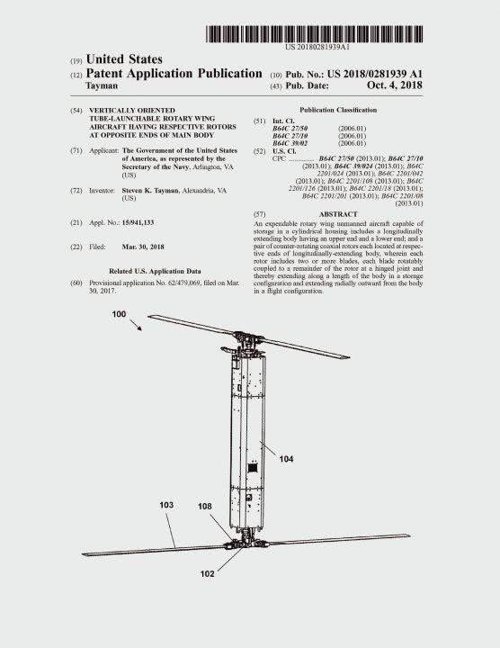 Nomad无人机是美国近日申请专利的一款小型飞行器,其特点在于轻便和快捷。Nomad无人机利用反向旋转旋翼,对气体进行压缩提供发射的速度,在管道中发射,在战斗中可避免复杂的调用和减少作战准备的时间。