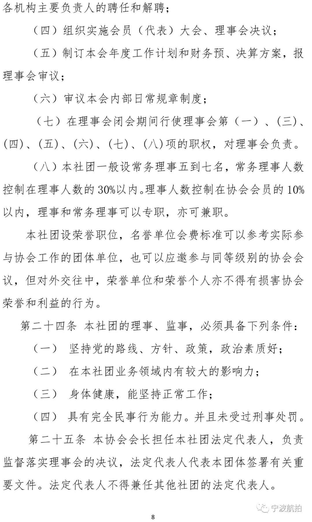宁波市航拍协会第二届常务理事会名单:吴坚、谢含军、陈立波、周思聪、江浩、王浙兵、金勇。