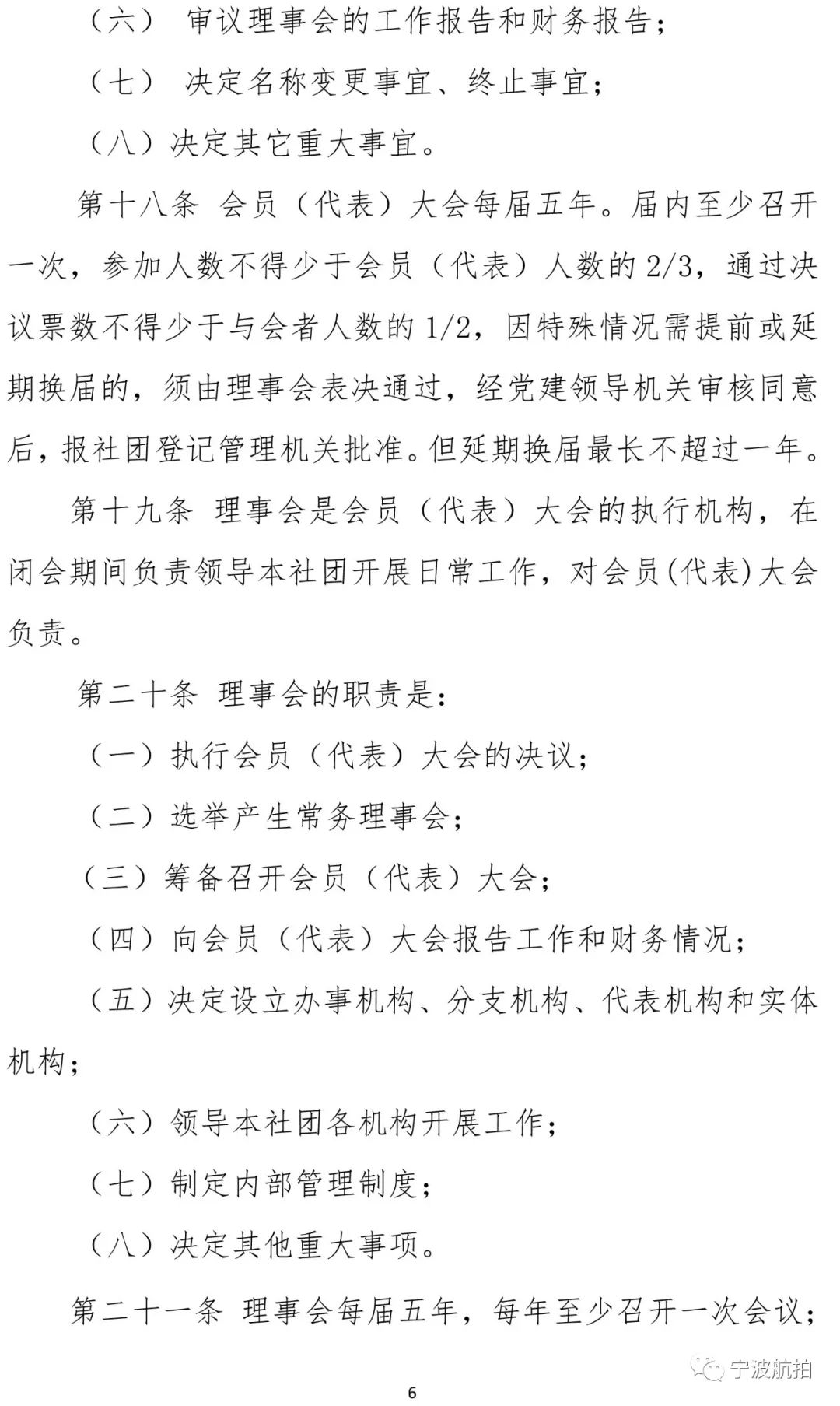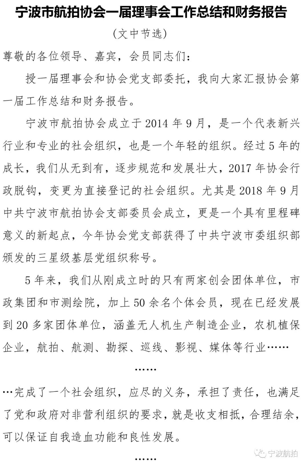 大会表决通过了《一届理事会工作报告和财务报告》、《一届监事会监事工作报告》、《宁波市航拍协会章程》,无记名投票通过了第二届《宁波市航拍协会会费标准》,选举产生了新一届理事、监事。