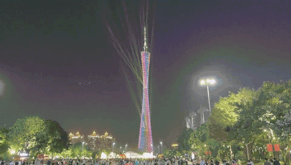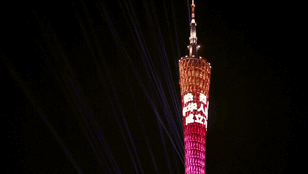 传统中轴“点亮”的同时,代表摩登广州的新中轴也“不甘示弱”。新中轴景观照明则围绕“我爱你中国·庆祝新中国70华诞”主题,以“光”为媒介,在广州塔塔身上、中、下三个部分安装全彩激光,运用激光编程展示广州塔灯光炫丽多姿的形象,献礼新中国成立70周年。同时,配合中信广场新中轴地标建筑的特点,在楼宇顶层安装全彩激光灯光秀,展示广州活力四射的魅力。