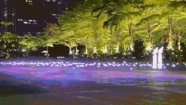 夜幕降临,以广州解放纪念碑为中心,以华厦大酒店、万艺大厦、广州宾馆、缤缤广场、恒基中心五栋楼宇为“主轴画卷”,以璀璨灯光为“时代之笔”,采用高清全动态三维视频技术,选取五羊雕像、镇海楼、万木草堂等最具代表性的地标建筑,及粤剧、舞狮、龙舟等文化意象,逐一展现祖国华诞、羊城传说、广府华彩、海丝文化、艰难探索、改革开放等六大主题,结合雕塑、广场地面及公园的灯光亮化设计,形成立体展示场域,娓娓道来广州历史故事。