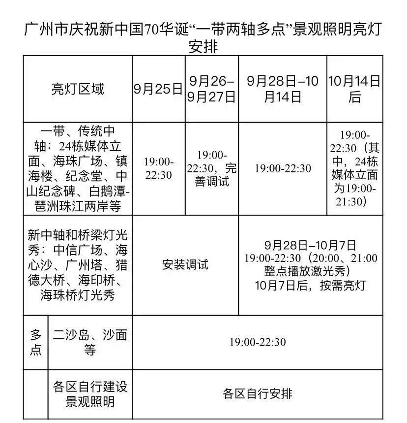 围绕“一带两轴多点”的城市景观照明布局,广州今年统筹开展了“一江两岸三带”核心段、传统中轴和新中轴景观照明提升工作,计划9月28日正式亮灯。昨晚(9月25日),已经完工的二沙岛、西堤码头、海珠广场等区域“试灯”。