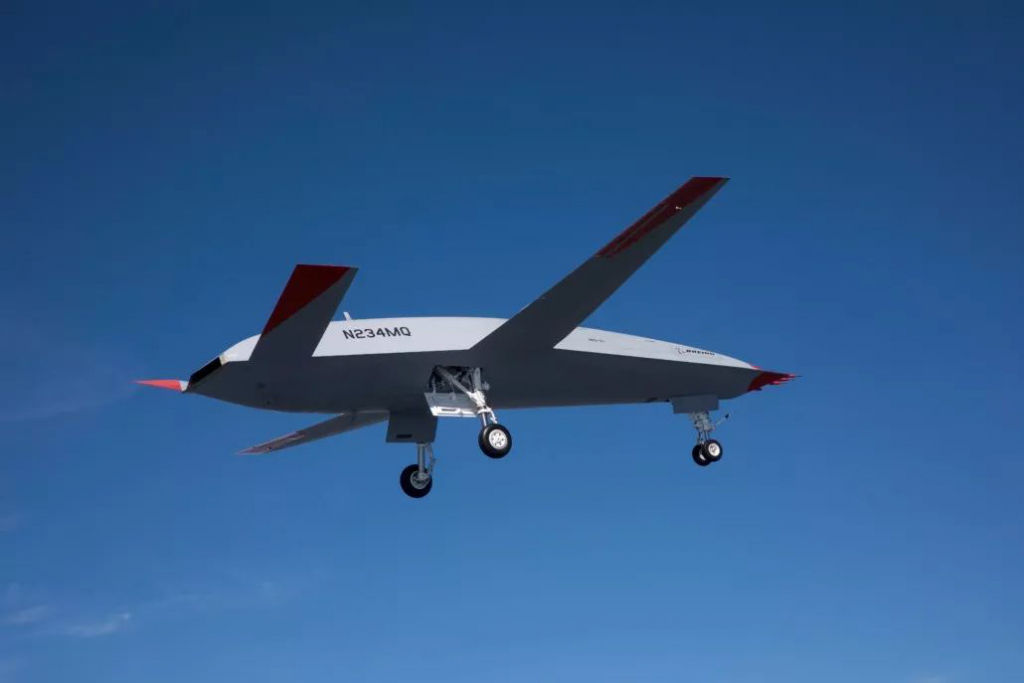 ▲首架 MQ-25 无人加油机原型机成功首飞瞬间。(美国波音公司官网)