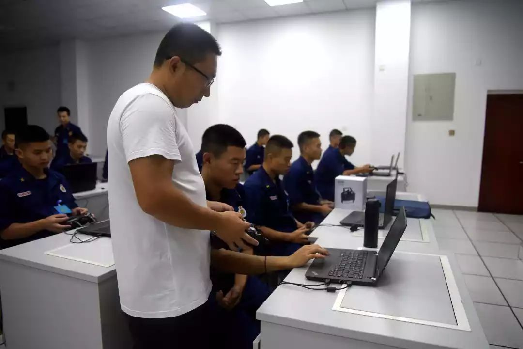 从培训计划安排表上,笔者看到培训时间虽然只有18天,但包含了理论授课、模拟器飞行、实装训练、研讨交流、答疑辅导、参观见学、综合竞技等,内容十分丰富。“此次培训战味浓厚,除了培训本身是为遂行任务服务之外,每名学员要在综合竞技中一较高下,我会认真学习训练,掌握无人机装备基本工作原理及操作、使用、维护、保养和常见故障排除等技能,力争在以后实战中能够圆满完成任务。”刚从课堂走出的学员黄海滨告诉笔者。