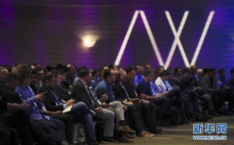 9月24日,在美国洛杉矶,人们参加2019年大疆创新AirWorks大会。 新华社记者李颖摄