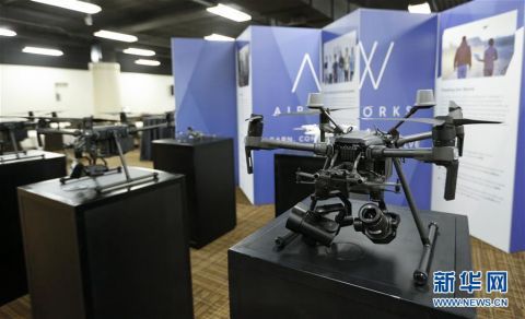 这是9月24日在美国洛杉矶举行的2019年大疆创新AirWorks大会上拍摄的大疆产品展览区。 新华社记者李颖摄