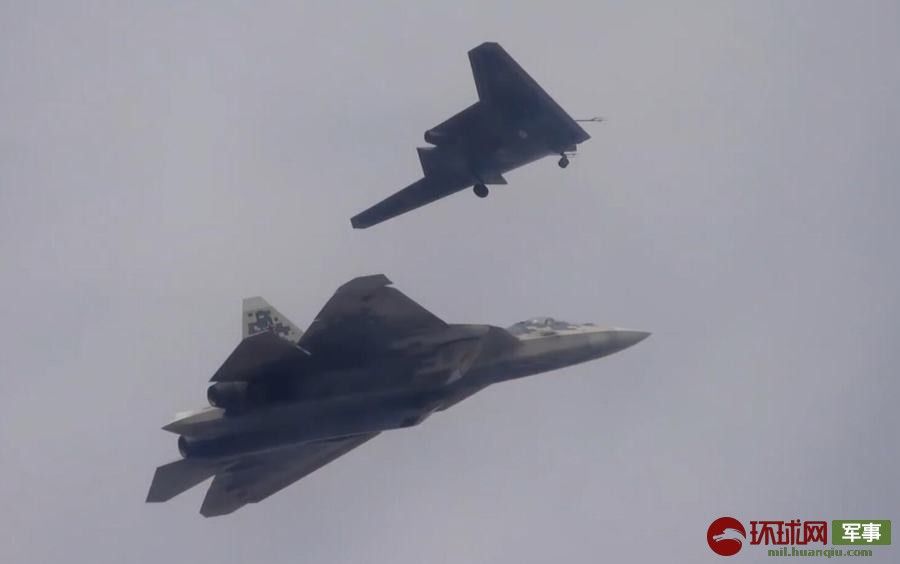 9月27日,俄罗斯“猎人”无人机首次与苏-57战机组成编队进行了联合飞行,飞行过程中,无人机与苏-57战机进行了“互动”。俄国防部称,飞行时间持续了30多分钟。