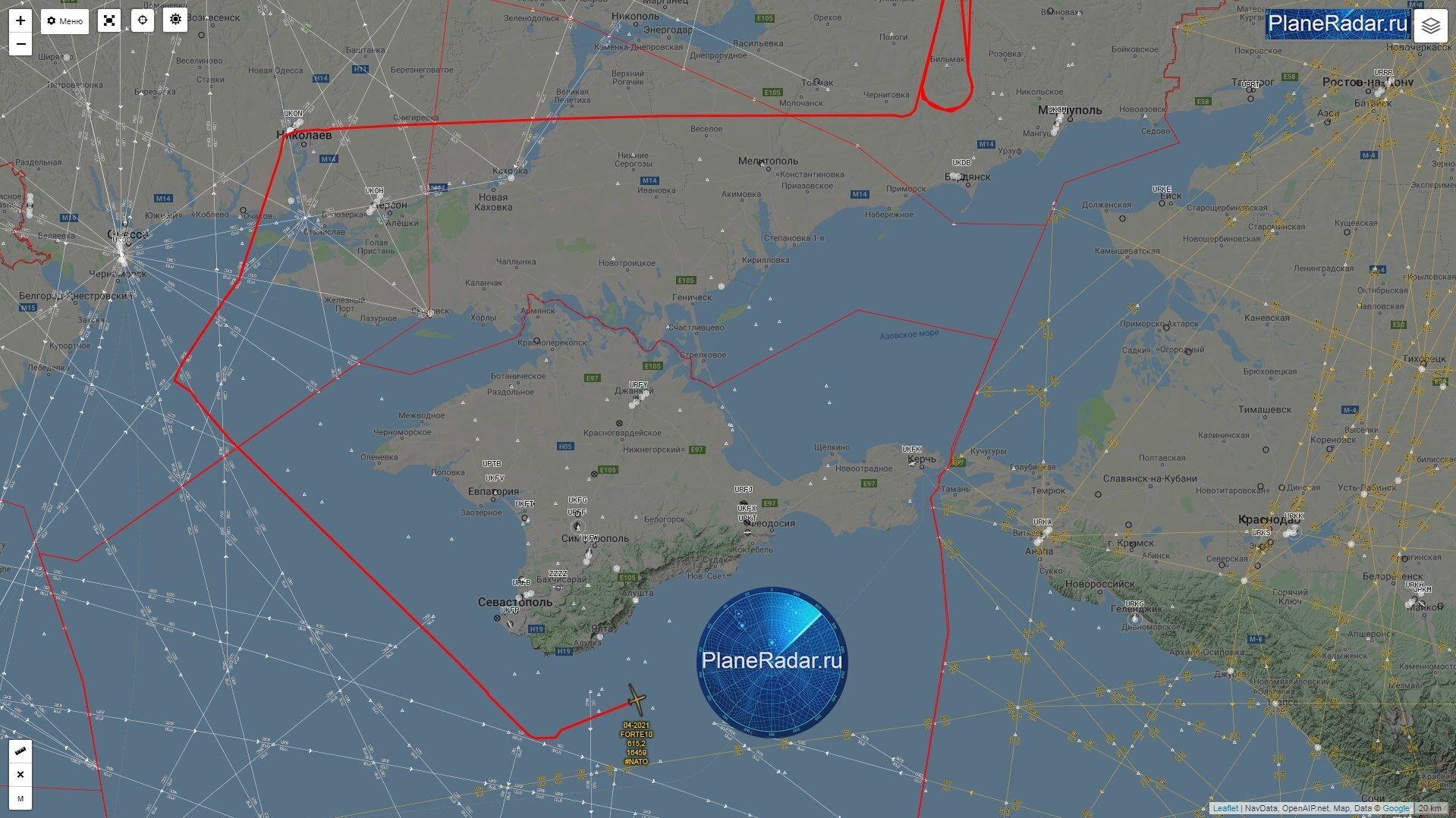 飞机雷达平台(Plane Radar)报告称,这架“全球鹰”无人机从意大利的一个基地起飞,飞越希腊、保加利亚、罗马尼亚与乌克兰,并在抵近克里米亚后,返回基地。