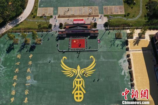 9月26日,江西省信丰县田垅畲族村内广场上,村民用480斤红辣椒、300多斤稻谷“晒出”五星红旗和“中华民族一家亲,同心共筑中国梦”字样,通过多彩民俗喜迎国庆。 刘占昆 摄