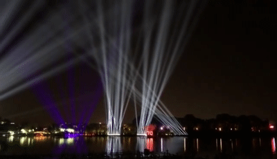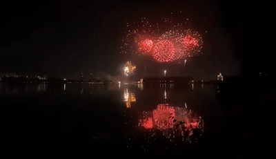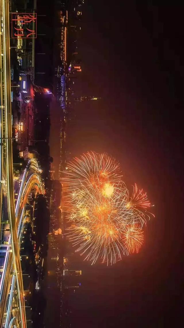 10月1日,晚八点左右,700架无人机空中表演,八点二十分左右,燃放烟花。