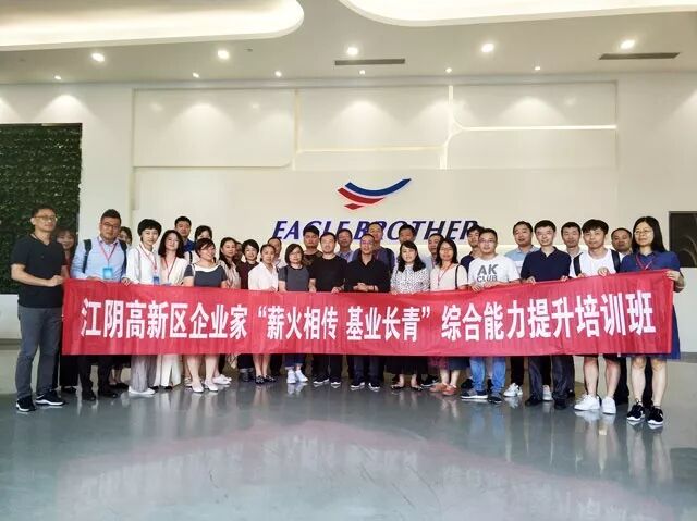 9月11日,江阴高新区企业家“薪火相传 基业长青”综合能力提升培训班来访天鹰兄弟集团总部参观学习。