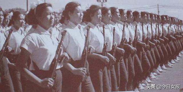 女民兵队伍最早在1958年国庆阅兵时亮相。新中国成立60周年国庆阅兵,中国首批战斗机女飞行员驾驶着教练机,从天安门城楼上空飞过。也是在这一年,受阅部队已涵盖陆军、海军、空军、第二炮兵和武警、民兵预备役等所有军兵种部队。