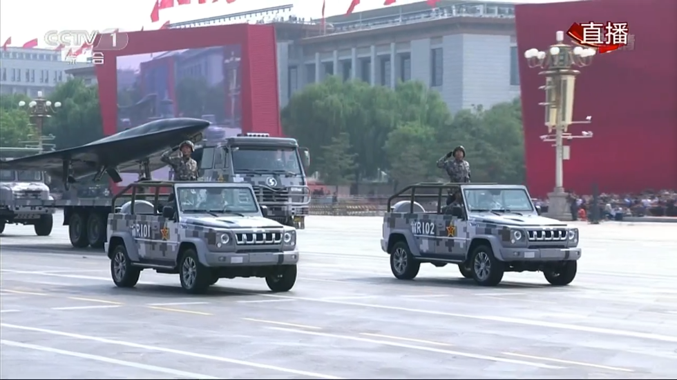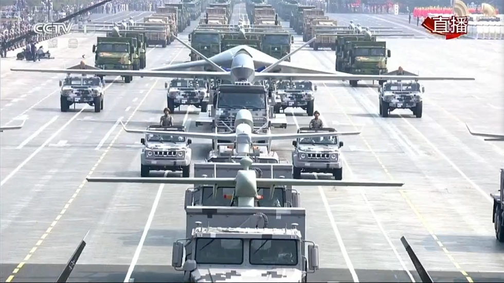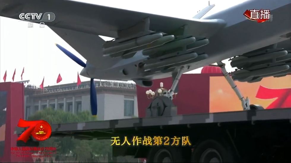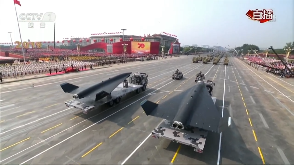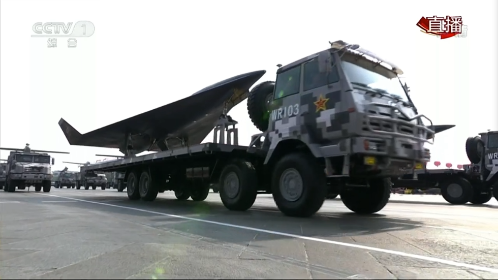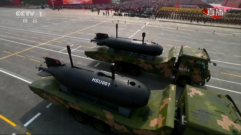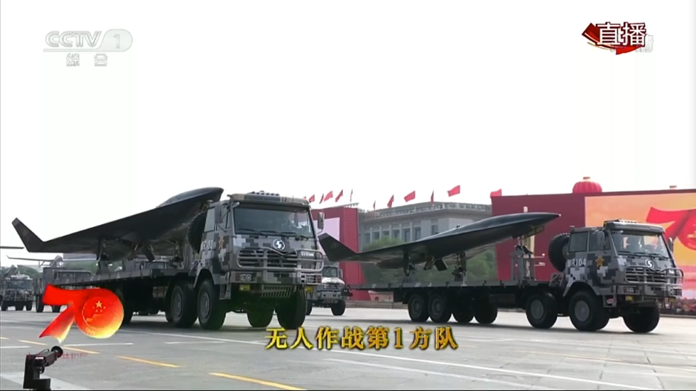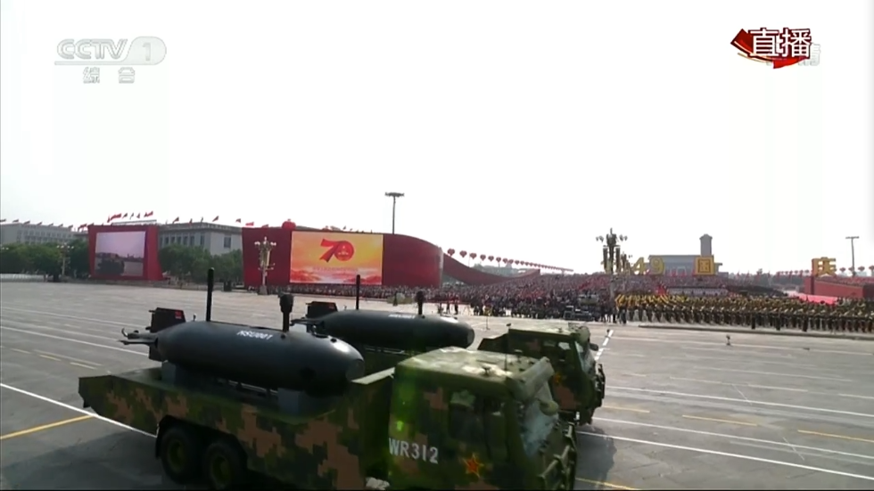 无人作战方队依次通过天安门广场接受检阅,无人潜航器和多型新型无人机亮相。