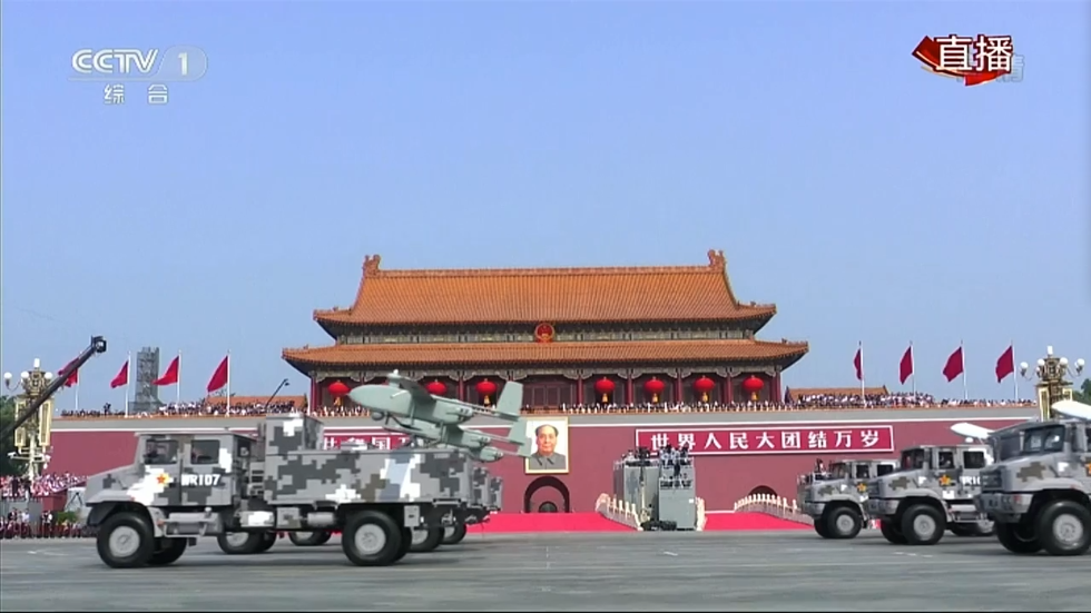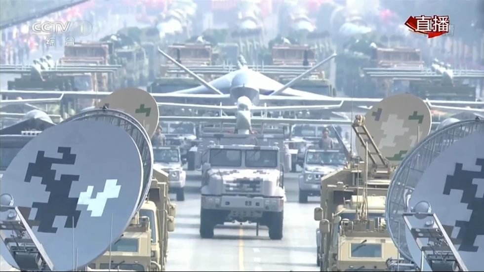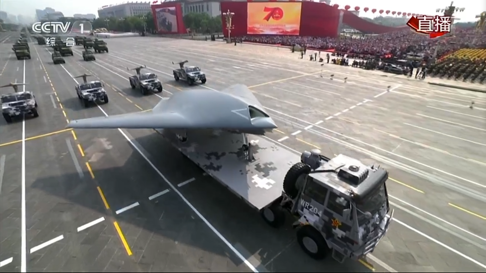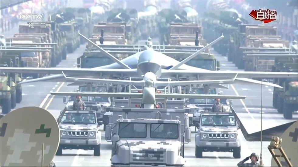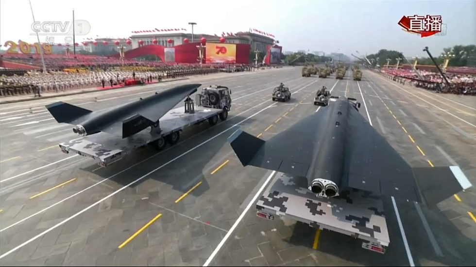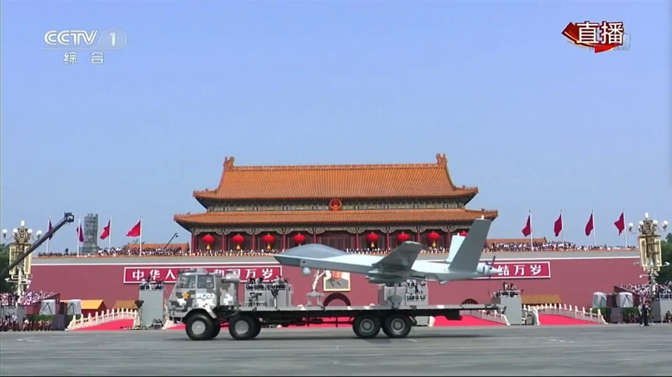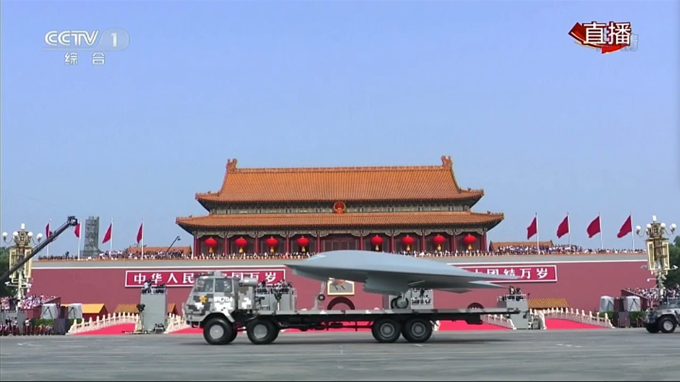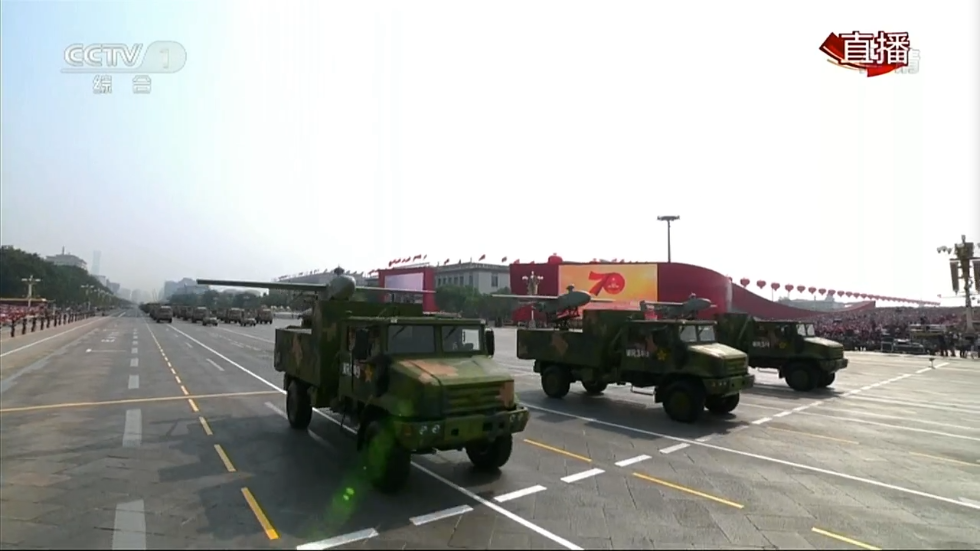 无人作战方队依次通过天安门广场接受检阅,无人潜航器和多型新型无人机亮相。