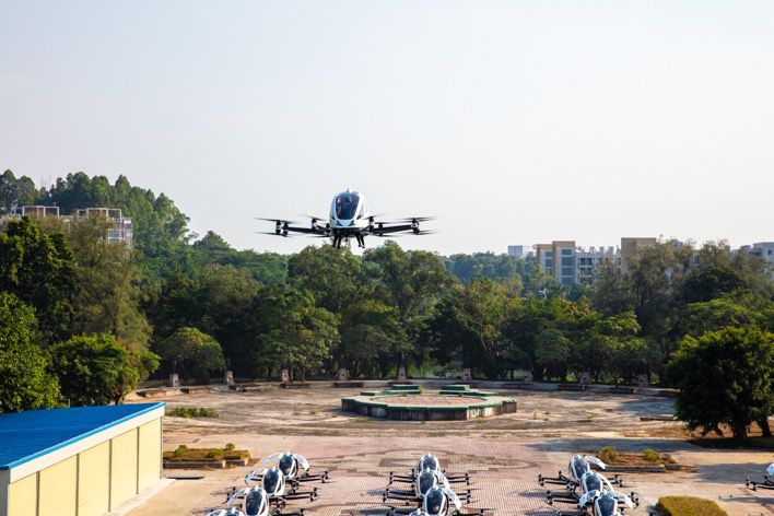 (图:亿航216在国内试点做飞行测试)
