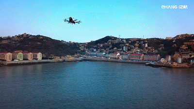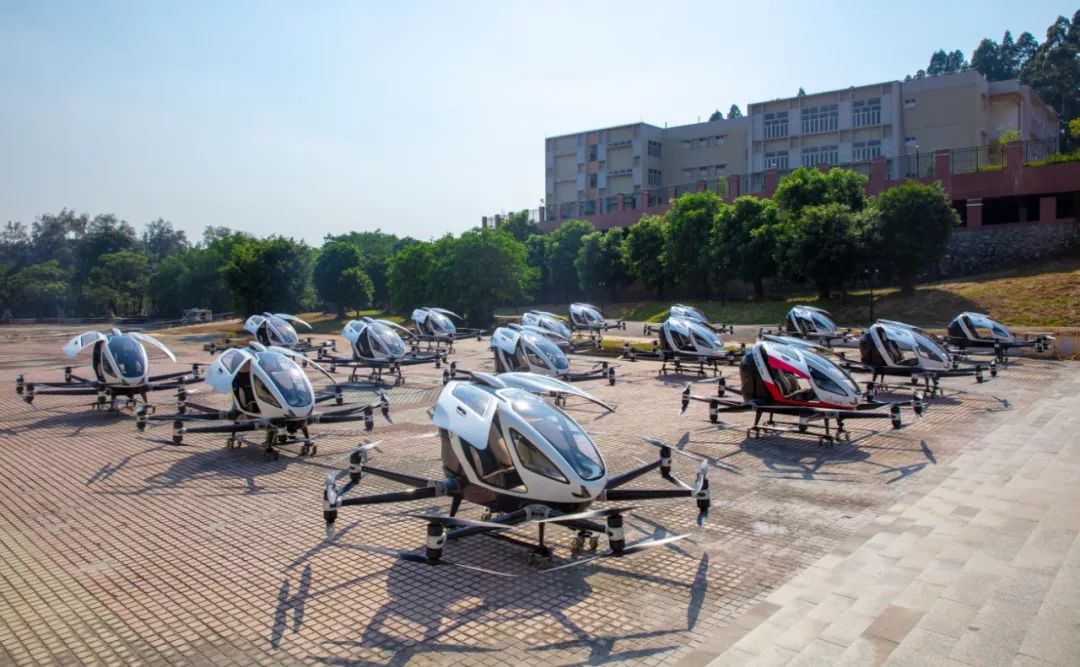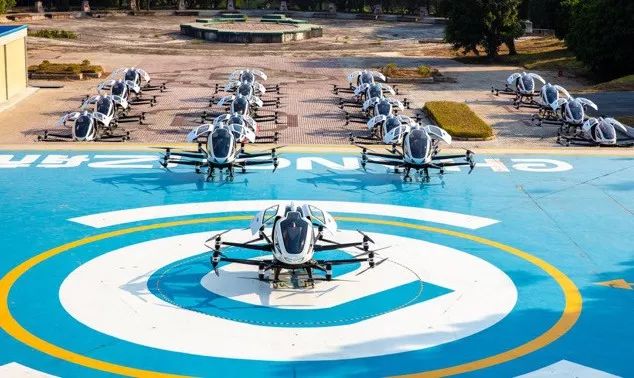 (图:3架亿航216同时腾空起飞,即视智慧城市空中交通未来图景)