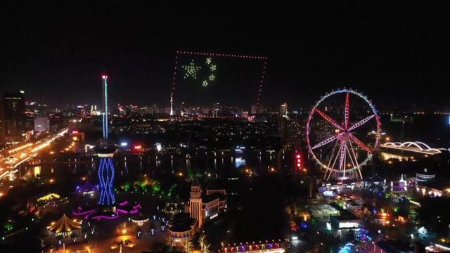 据了解,国庆长假期间,无人机灯光秀预计每晚9:30开始。如果天气出现影响,会有所调整,提前上演。