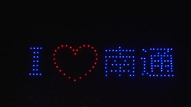 10月2日晚,南通探险王国上空,152架无人机灯光秀精彩上演.无人机升空列阵,时而组成和平鸽,时而组成参天大树、“复兴号”、国产大飞机“C919”、长征火箭。