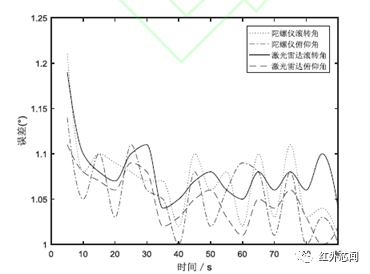 (3)选取合适的步长△d,对于区间[dmin,dths 式中(c,kt)可选方向与目标点的夹角,(c,kr)可选方向与当前方向的夹角∆(c,kbt)可选方向与上一次运动方向的夹角,u1+u2 在求解的所有dthi中,求得代价函数函数值最小的一项对应的dthi即为最优阈值。 2.3 自由扇区与转向的确定 首先需要对激光雷达采集到数据生成环境信息,在根据环境信息确定无人机可通过的扇区区间,在可通过的扇区区间中选取一个最合适的区间,为无人机行进的方向。 (1)自由扇区的选取 定义在极坐标环境信息中,如果θ角度方向的距离d小于等于ds且dd小于无 人机的宽度,则该区域称为峰扇区:否则为谷扇区。其中,dd的定义如下: 其中,φ为包ds并且大于ds区域的角度值。 根据上述定义确定的自由扇区,就是无人机可以通过的方向。 (2)平台转向方向的确定 以激光雷达为中心的直角坐标系下,利用式(6)计算目标点与无人机的夹角α,如图4所示。 在公式(7)中,(xg,yg)和(xr,yr)为在直角坐标系下的距离目标点的距离。 图4 测量位置关系图 如图4从测量位置关系图可以看出,在无人机的前方共有三个障碍物,均可以通过θ1,θ2,θ3,θ4 4个方向到达目标点。通过比较可知与目标点方向接近的方向有两个分别为:θ2与θ3。根据自由扇区选取的定义可知,θ2与θ3都是自由扇区,均可作为无人机的飞行方向。然后分别计算两个候θ2与θ3与目标点方向之间的角度β1,β2,通过比较到达目标点距离近的自由扇区为最终的方向。θ3扇区到达目标点的距离比θ2扇区到达目标点的距离更近,因此,θ3扇区是无人机的最终行进的方向。 (3)转向角度的计算 如图4在建立了激光雷达极坐标环境地图之后,无人机的行进方向为Φ。 αl为θ3扇区的终止方向O2的角度,α2为θ3扇区的起始方向O1的角度。 最终航向为: 3 实验分析 根据上述算法的规则,设计无人机避障实验,激光雷达采用的是川杉机器人公司的Delta3。激光雷达参数如表1所示,激光雷达和无人机如图5所示。 表1 激光雷达的相关参数 图5 激光雷达与无人机 为了测试本文的方法,文献11和文献12进行对比实验,如图6所示。图6中障碍物之间距离均满足阈值要求,本文方法根据障碍物检测结果对无人机移动方向和速度进行不断调整,无人机可以较好无碰撞的避开障碍物,并准确到达目标点。表2所示所本文方法行进的距离更短,时间更短,说明本文方法寻得的路线更优。为了验证避障精度进行30次避障实验,文献11成功避障22次,文献12成功避障26次,本文方法成功避障29次,精度可达96.7%。与文献11和文献12两种方法进行了对比,本文方法结果更为精确性能更优。 图6 避障结果示意图 表2 与其他方法的对比 为了测试无人机避障时的姿态误差,以陀螺仪的姿态系统与采用激光雷达的姿态系统相比较如图7,图8,图9。 图7 无人机的位置偏移 图8 滚转角与俯仰角误差 图9 无人机航向误差 图7表明无人机的位置偏移表明无人机的位置偏移均保持在1cm之内,图8分别为滚转角误差和俯仰角误差,表明其误差也均在0.2︒以内,图9为无人机航向误差,其误差范围在1︒以内。均比陀螺仪的姿态系统误差小。因此,利用激光雷达作为传感器,无人机在避障的过程中姿态控制有较高精度,能够满足避障控制要求。 4 结论 本文以激光雷达为传感器设计了一种无人机的避障方法。该方法计算效率高,鲁棒性强,对误读不敏感等优点。针对传统VFH阈值敏感问题,提出了一种结合阈值评价函数的自适应阈值策略。实验结果表明,利用激光雷达获取的环境信息并结合改进VFH算法满足避障精度要求,精度可达96.7%,能够使无人机安全的到达目标点,并且无人机姿态的反馈控制的精度也满足避障控制的要求。该方法适用于无人机的实时避障规划。