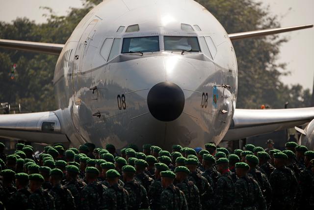 新华社照片,外代,2019年10月5日 (外代一线)(11)印尼庆祝国民军建军74周年 10月5日,在印度尼西亚雅加达,士兵参加国民军建军74周年庆祝活动。 当日是印度尼西亚国民军建军74周年纪念日。 新华社/路透