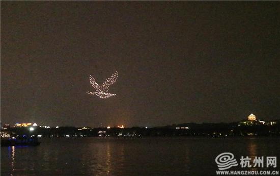 西湖风景名胜区管委会工作人员楼刚说:“我们前期的创意和策划用了一个多月的时间,”精心选择了起飞(降落)及观景点,并向空管部门进行报备,为市民游客呈现了一场夜间视觉盛宴”。