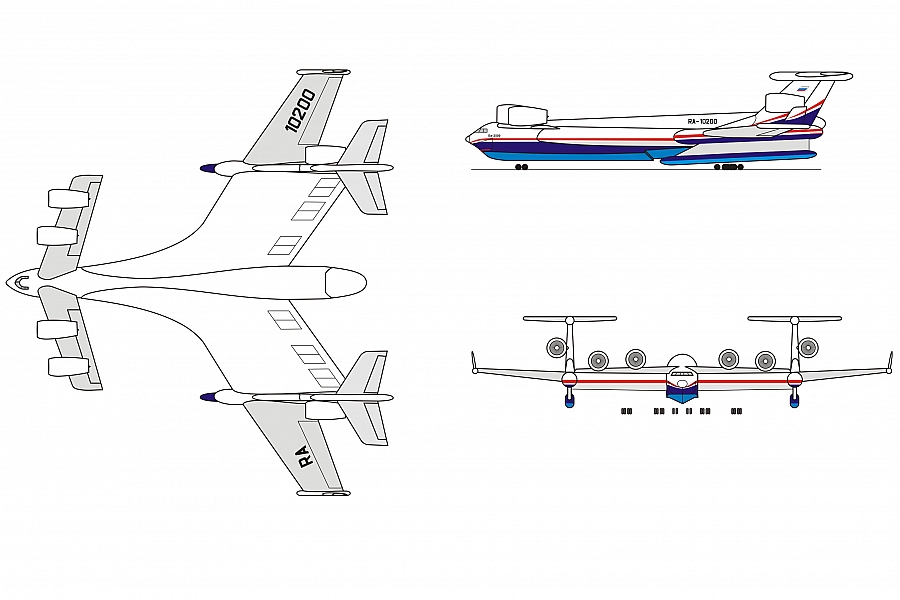 【据ruaviation网站2019年10月2日报道】俄罗斯联合飞机公司宣布,正在研制最大起飞重量超过1000吨的水上飞机,其尺寸约为别-200系列水上飞机的二十倍。该机由别里耶夫飞机公司和联合飞机公司下属的一家子公司共同开发,可以利用现有海运港口的运输基础设施,以一定的的高度和速度远距离运送货物和乘客。别里耶夫公司曾推出过别-2500水上飞机的概念(如图),为一种超重型水上飞机,计划最大有效载荷为1000吨,最大起飞重量为2500吨,机翼跨度为125.5米,长115.5米,最高时速800公里,预计航程16000公里。
