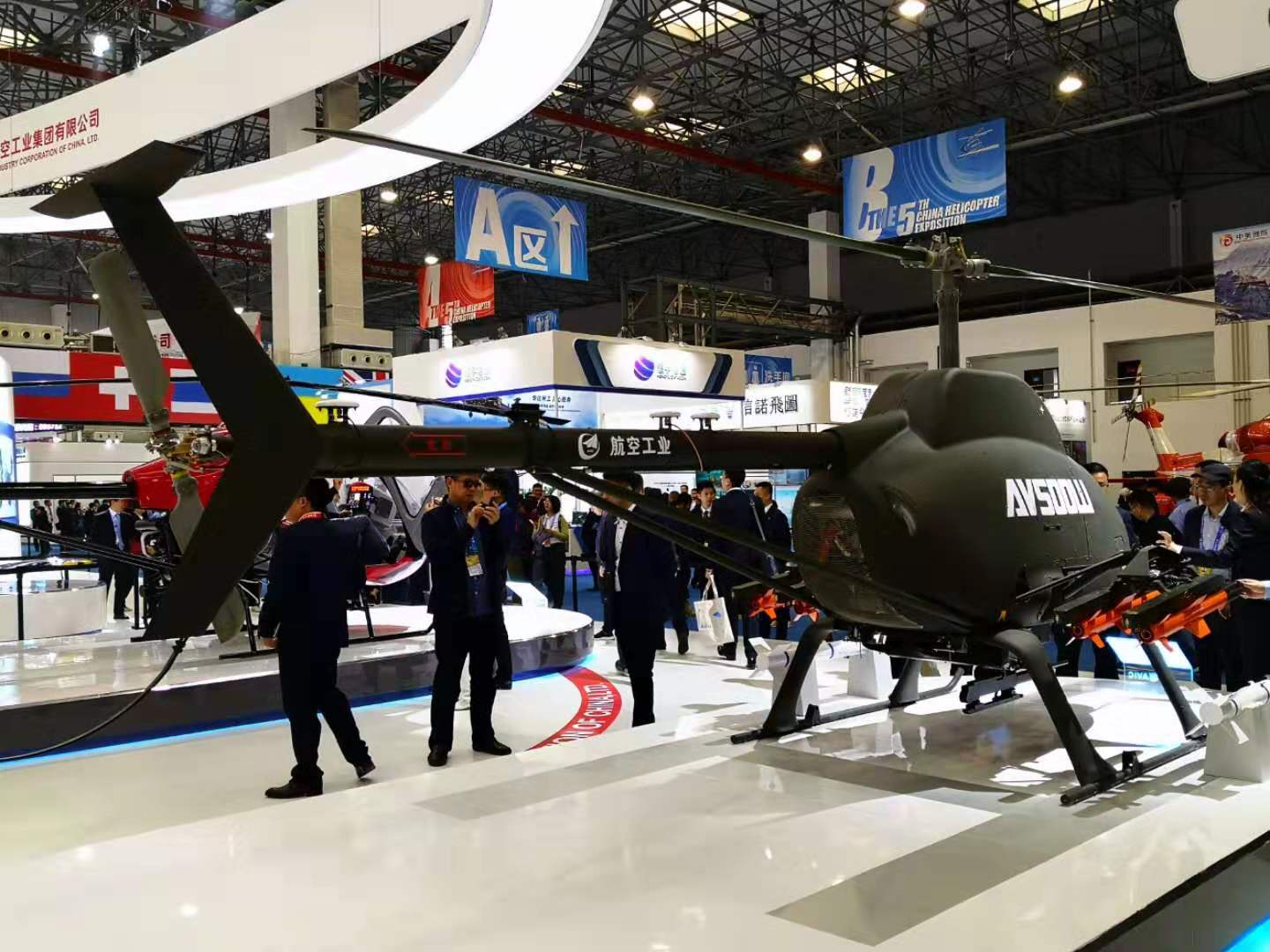 展上的一架直升机装上了自动驾驶仪,据称可以实现完全无人驾驶,机上人员可以无需操纵飞机。