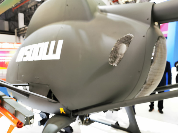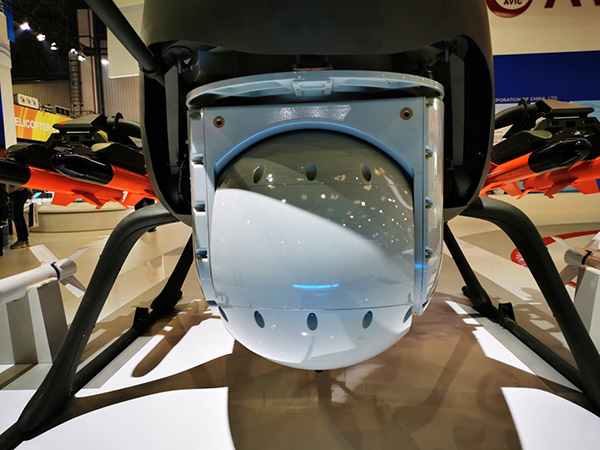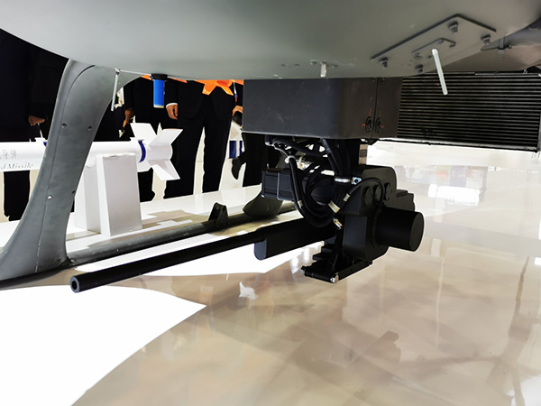 AV500W察打一体无人机下挂的机枪。据现场工作人员介绍,该机枪口径为5.8毫米