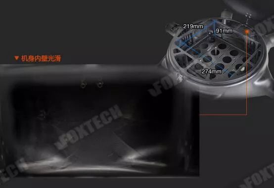 续航90min 结构轻航时长 超大内部空间219mmX91mmX274mm,可以装载更大电池,无负载时续航时间可以达到90min,高效率作业。