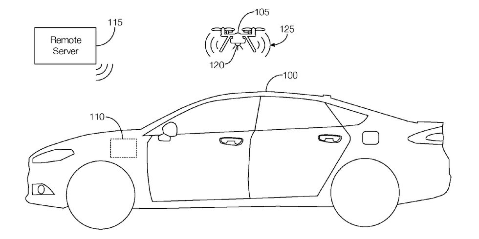 随着无人机变得越来越普遍(FAA称,到2020年,将有430万架无人机交到业余爱好者手中),汽车制造商对此产生了兴趣也就不足为奇了。福特一直在表达对“机动性”新方法的兴趣,其中之一是可编程无人机的专利,如上图所示,驾驶员可以从车辆上起飞无人机。