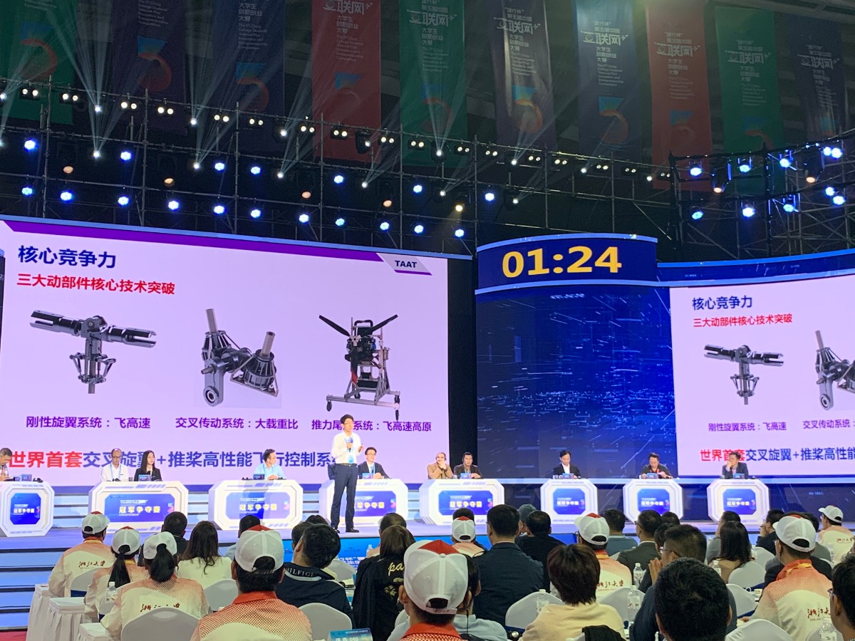 其中,“交叉双旋翼复合推力尾桨无人直升机”项目由清华大学博士团队打造,他们研制出世界首架交叉双旋翼复合推力尾桨无人直升机,具有载重大、操控稳、突防快优势,其载重相比传统构型提高 30%,速度相比同级机型提升100千米/小时。目前团队已完成 60公斤、100公斤、300公斤级交叉双旋翼复合推力尾桨无人直升机首飞,500公斤级研制。该项目获陆军装备科研支持,并纳入全军武器系统采购目录,成为我军首个复合推进直升机装备研制项目。 2017 年,项目参加清华大学校长杯创新挑战赛,获唯一金奖与技术创新奖。