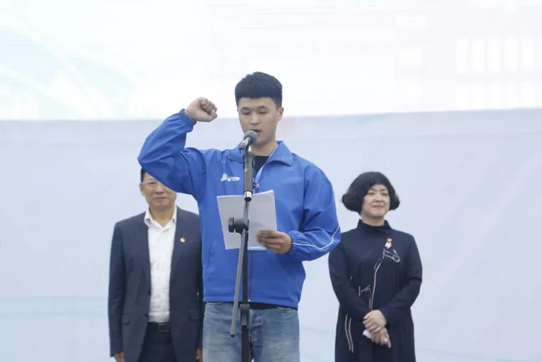 选手代表宣读倡议书,总裁判长代表裁判组宣誓。