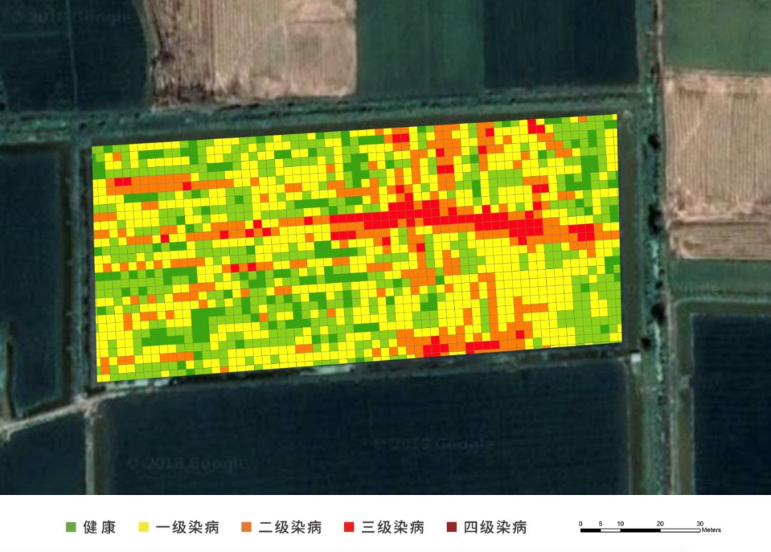 因此在整个过程中,麦飞系统先是通过视觉光谱技术实时获取农作物不同生长阶段的生理常数,实现对农作物生理状态的智能感知。在掌握病虫害的分布及程度后,根据生成的施药处方图精准施药,并实时动态地调节植保无人机平台的飞行速度与喷量,将整体施药量降低50%以上。据了解,麦飞科技的遥感技术目前可以检测出17种常见病虫害种类,准确率可达97%,云端积累了超过100TB农情AI数据,4.0亿+组光谱数据,截止2018年底麦飞全国精准服务农田面积已超过200万亩。