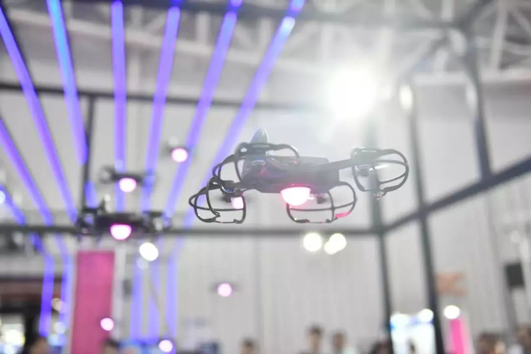 在现场,一场由无人机演绎的“十面埋伏”于2号馆深圳市无人机协会展区上演,10架无人机一键起飞,自动执行表演,非常酷炫。