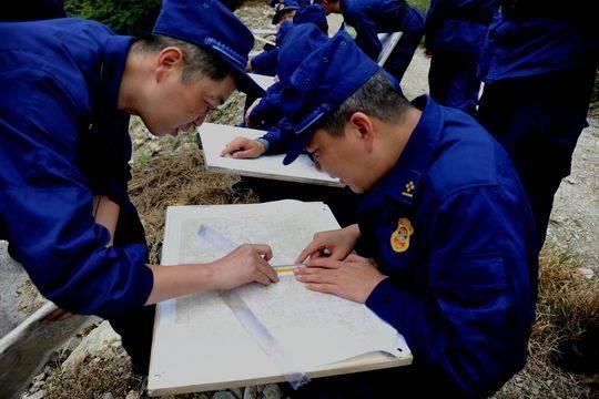 第一个科目展开训练,为熟练掌握火场侦查通联手段。主要从学习识图用图、熟悉地形地貌、组织现地对照、进行地貌判读传统方法入手,模拟高山峡谷偏远地带、无网络、无信息通联情况下任务地域侦查勘察为背景。