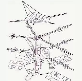 从解析图可以看到,建筑层数越往上,面积越收缩,最终才形成立体的五角星型。