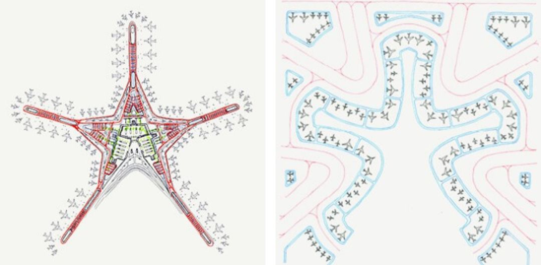 红星航站楼的建筑外围空间将用于布置飞机,充分利用了每一寸外围空地。