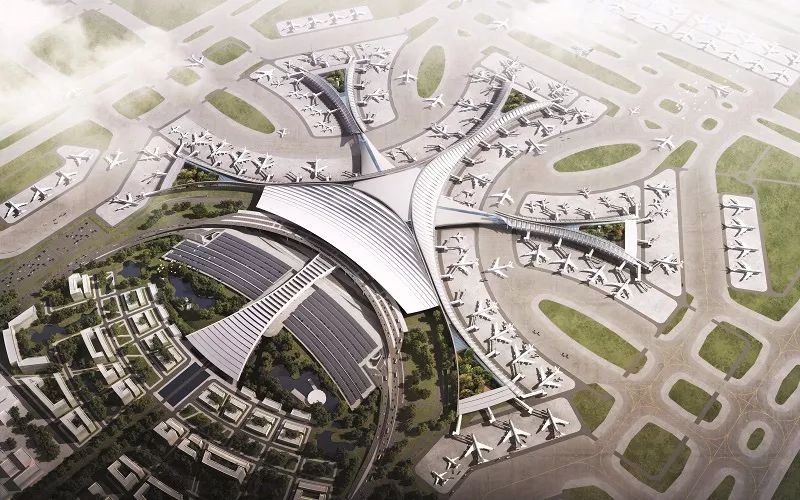 北建院、民航院联合体给出的方案为东西“二元式”布局,拆分成了两座主航站楼。