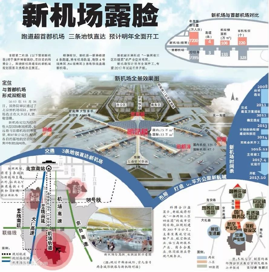工程总投资约800亿元,主要建设4条跑道、70万平方米的航站楼和各类生产服务保障设施。