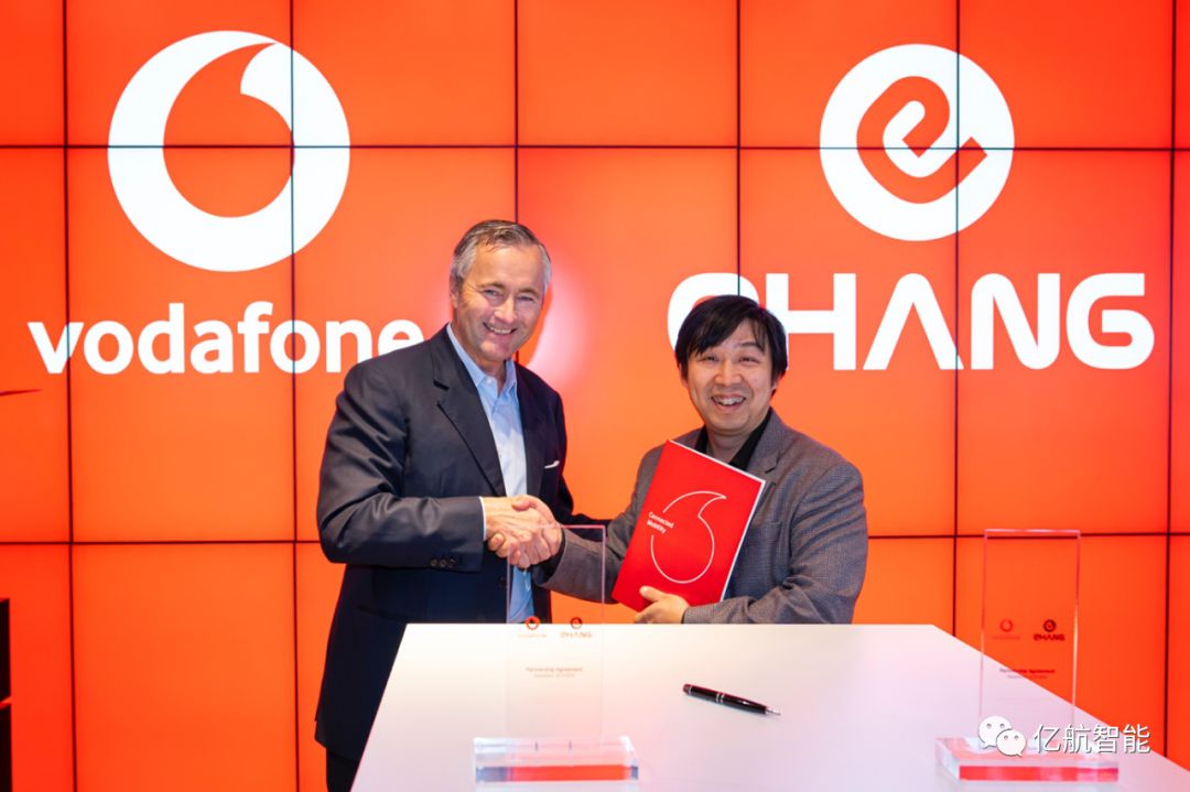 (沃达丰CEO Hannes Ametsreiter与亿航智能创始人、董事长、CEO胡华智)
