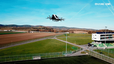 其自主研发的载人级自动驾驶飞行器——亿航216,可搭载两名乘客,采用纯电动绿色能源,可提供自动驾驶的空中交通服务,已在中国、荷兰、卡达尔、奥地利等世界多个国家完成多次安全飞行演示。