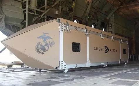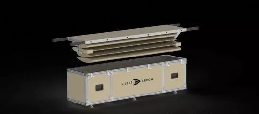 Silent Arrow无人机机翼可以折叠。其弹簧展开的机翼在机身内部运输,需要从固定翼飞机或直升机上释放出来才能发射。目的是让货物滑翔机用于紧急物资、货物和燃料的部署——在YEC所说的“严峻的运行条件和时间表”下。
