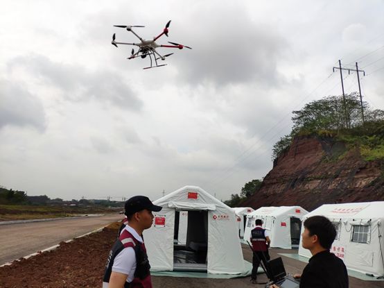 慧明捷的单兵图传和无人机作为重要应急通信设备参与本次演练,单兵图传由救援队队员背负至模拟灾害现场,无人机从高空视角拍摄模拟灾害现场,进行空地联动,对灾害现场的语音和图像进行实时传输,传输的音视频信息通过现场通信指挥室,再实时回传至市级、省级指挥中心。图像清晰,语音连贯,实现了现场指挥通信车和市级指挥中心、省级指挥中心应急通信的互联互通,方便各级指挥中心作出最全面快捷的指挥调度。