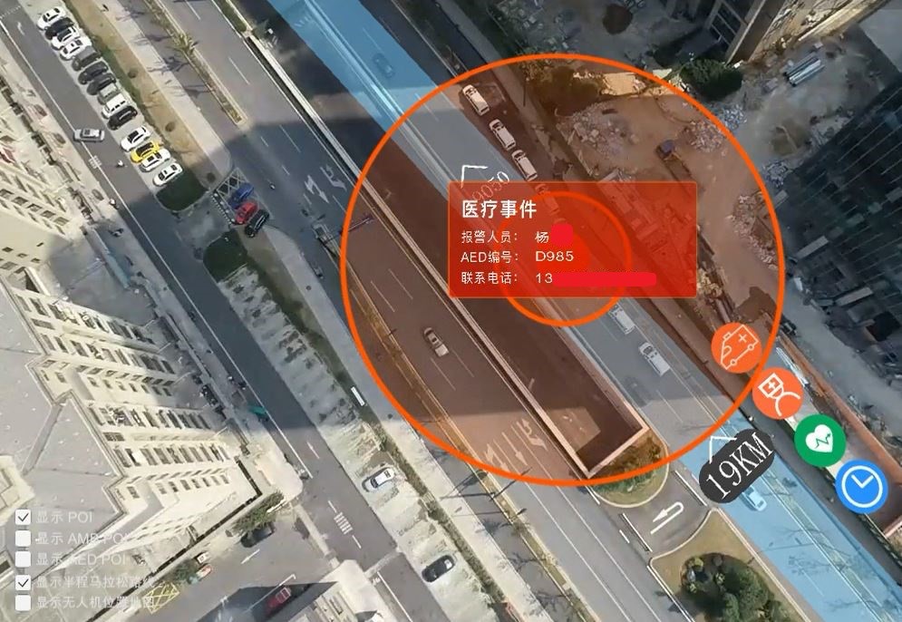 在梦马大数据指挥中心的现场,无人机航拍实时回传赛事现场视频,通过AR技术实时展现参赛人员行进方向、AED(自动除颤机)分布、救护车辆、救护人员位置等信息的动态变化。当赛事现场发生紧急事件时,梦马大数据指挥中心能第一时间收到提醒、全局调配保障资源、实时跟进现场处理进展,保障救援准确高效执行。