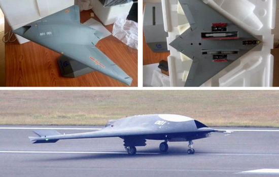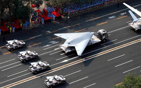这是一架无尾飞翼,具有高度隐身特性,采用单台发动机,前三点起落架。机内弹舱的细节无法从阅兵中看到,但相信可以容纳足够数量和重量的各种弹药。既然坐镇在无人机方队的中军帐,这自然是无人驾驶的。