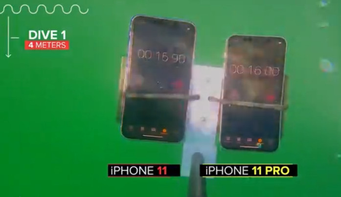 第二次的下潜深度为8米,除了同样的扬声器问题外,两款手机均正常:两块屏幕仍可正常工作,相机拍摄的照片不存在任何模糊或透水的迹象;iPhone 11扬声器播放的音频依旧比iPhone 11 Pro柔和。