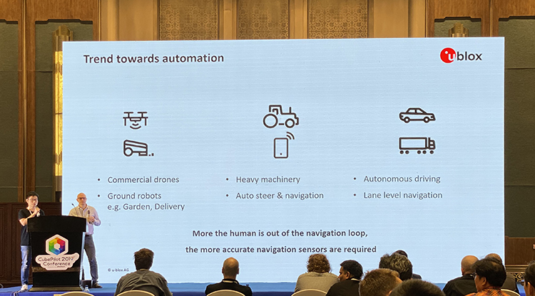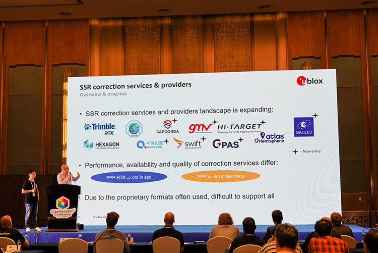 会上,u-blox市场开发经理兼F9P芯片项目开发主要负责人Peter Fairhurst分享了精准卫星定位导航市场中应用SSR的技术趋势,在高精度GNSS系统有两种观测表达方式,分别为观测状态表达方式(OSR)和状态空间表达方式(SSR),OSR主要在测绘领域应用,不适合大规模使用。而SSR需要本地基站的服务,将一个区域内的状态用同样的方式表达,使用所有的基站来模拟修正图,从而带来了节省带宽的好处,可应用在卫星通信等领域这样的技术在未来极具价值潜力,本地物流无人机会应用高精度的导航技术。