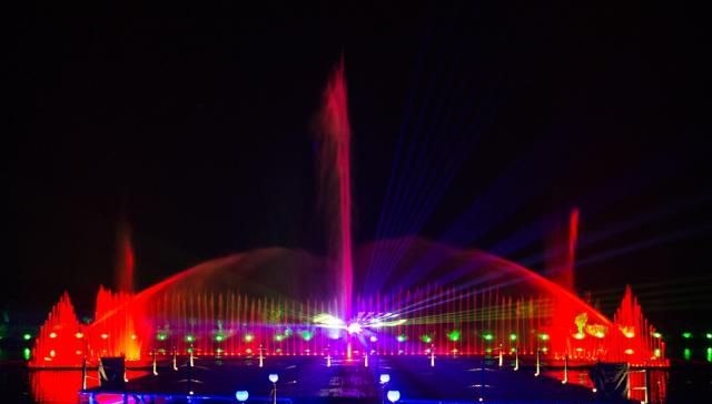 活动现场的西侧有一方水塘,这里既是徒步、垂钓的好场所,又是音乐水舞秀的现场。随着音乐的响起,一条条水柱在空中升腾,并变化出多种不同的造型。随着水幕电影的播出,水舞秀现场气氛达到了最高潮。