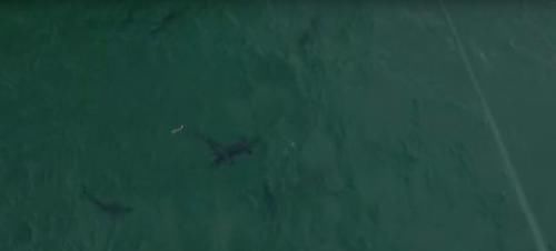 接着无人机去到距离岸边接近1000米时,找到了一大群鱼在活动,于是他就将鱼钩放进海中。