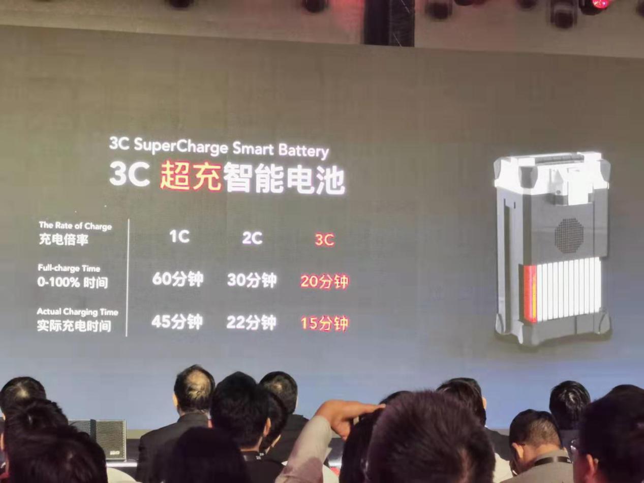 全新超充智能电池13芯不仅可以兼容最新的设备而且还有兼容之前的机型设备。4.35V的高压电芯赋予更高的电池密度。同时,新款超充电池充电速度将更快,据了解2017-2018年平均一台机要配备8块电池,自2019年极飞发布2C新品电池之后所配备的电池数量大约在4-5个左右。然而,现在极飞将2C快充智能电池提升到3c的超充电池,其充电效率更快,短短15分钟即可充满。